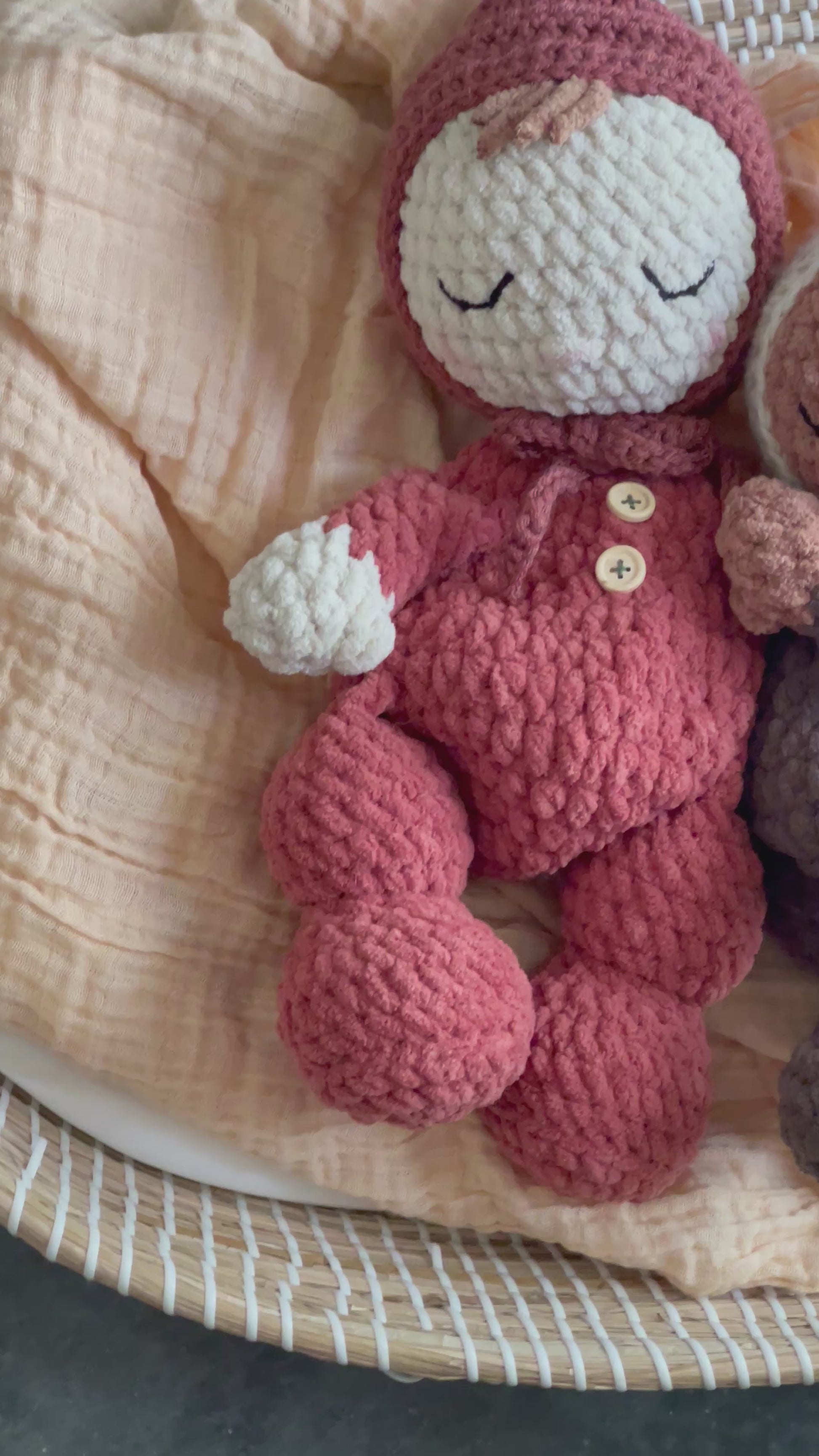 Whether you’re an adventurous beginner or a seasoned stitcher, this pattern is written with plenty of step-by-step guidance to keep you hooked (pun totally intended). Dress your sleepy baby in your favorite yarn colors, give them a paci, cute embroidery, or blanket if you like, and watch them snooze their way into everyone’s heart.
