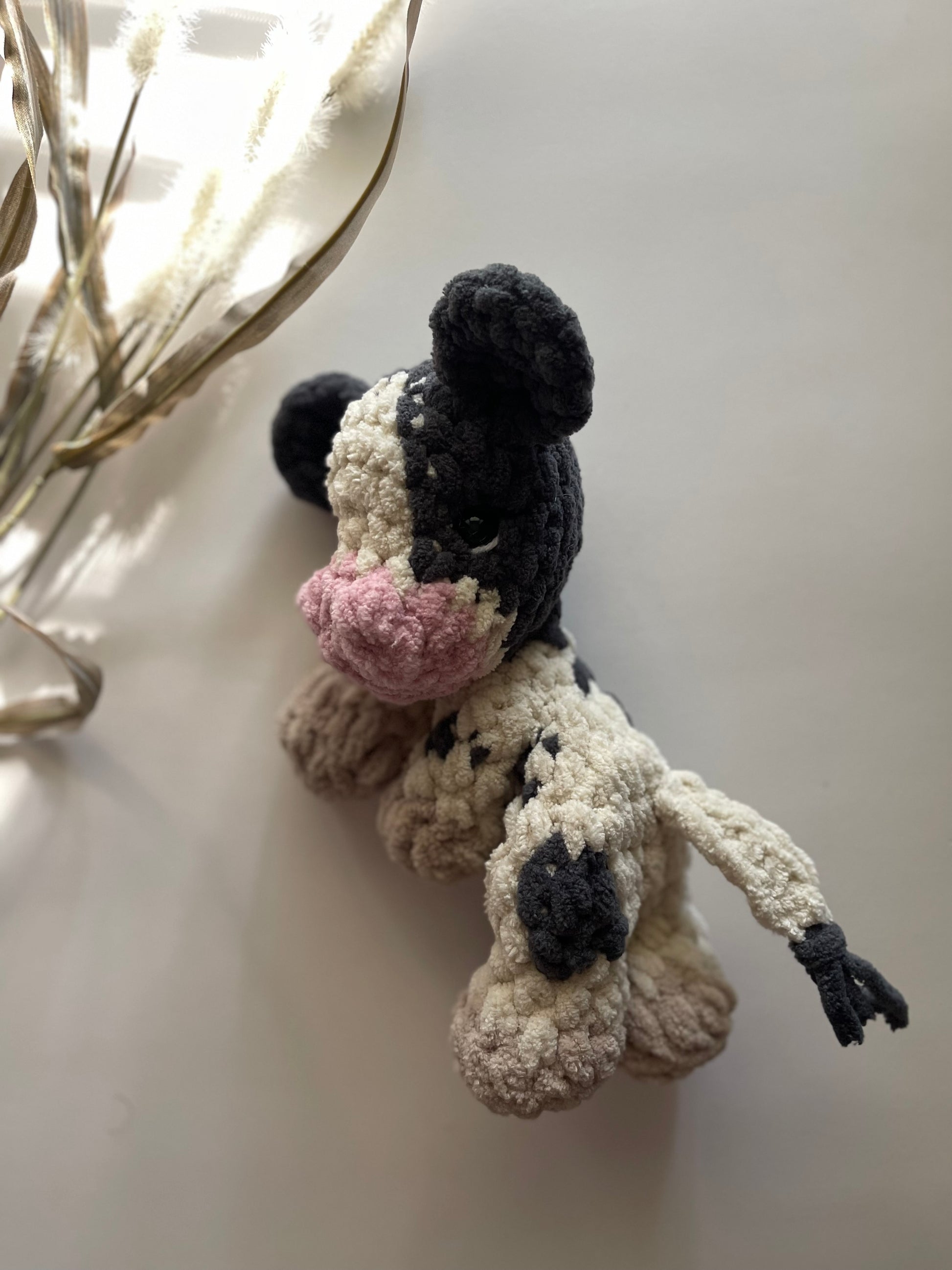 This adorable baby calf is incredibly soft and huggable. Each item is handmade and have their own personality and special features.